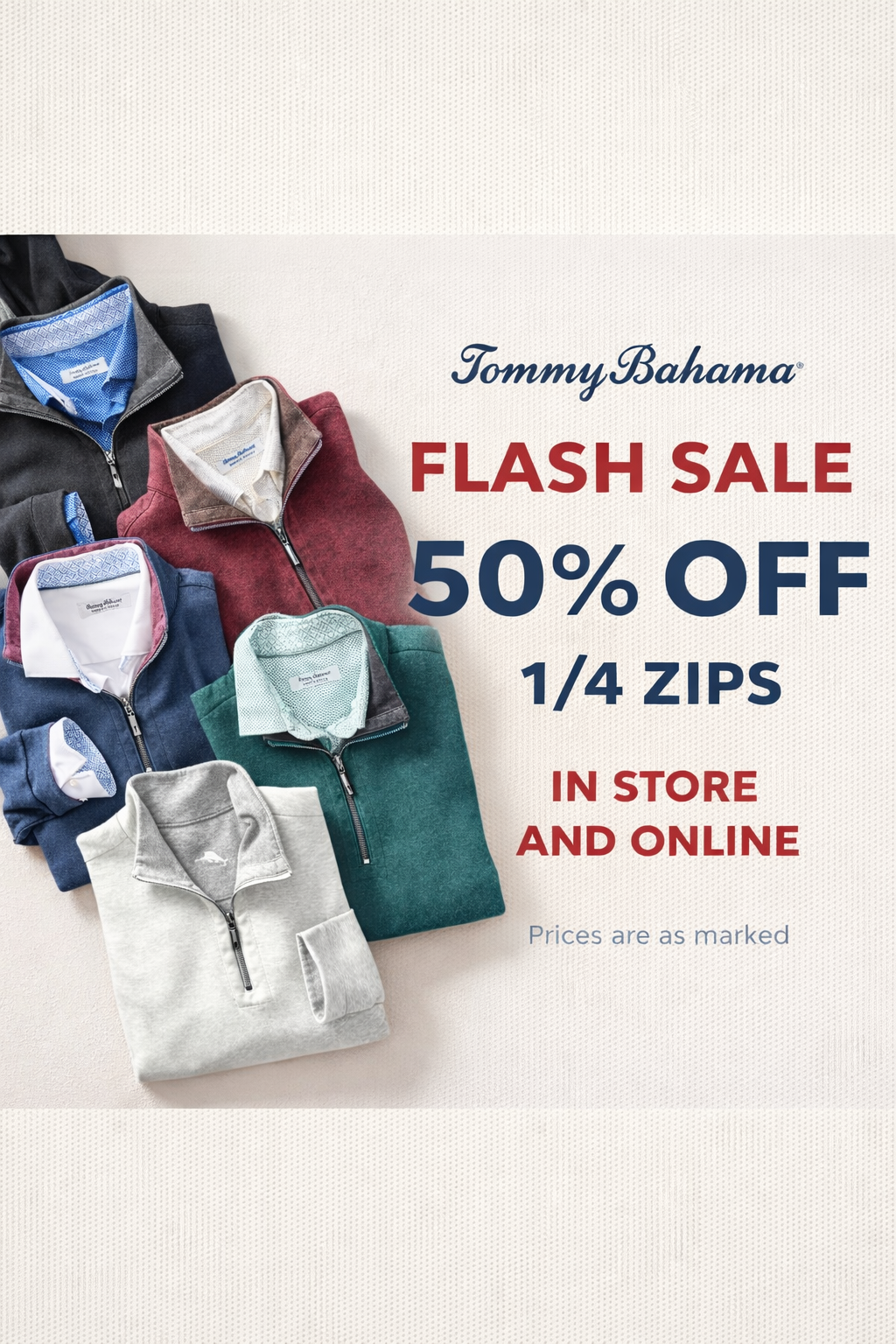 50% off Tommy Bahama 1/4 Zips
